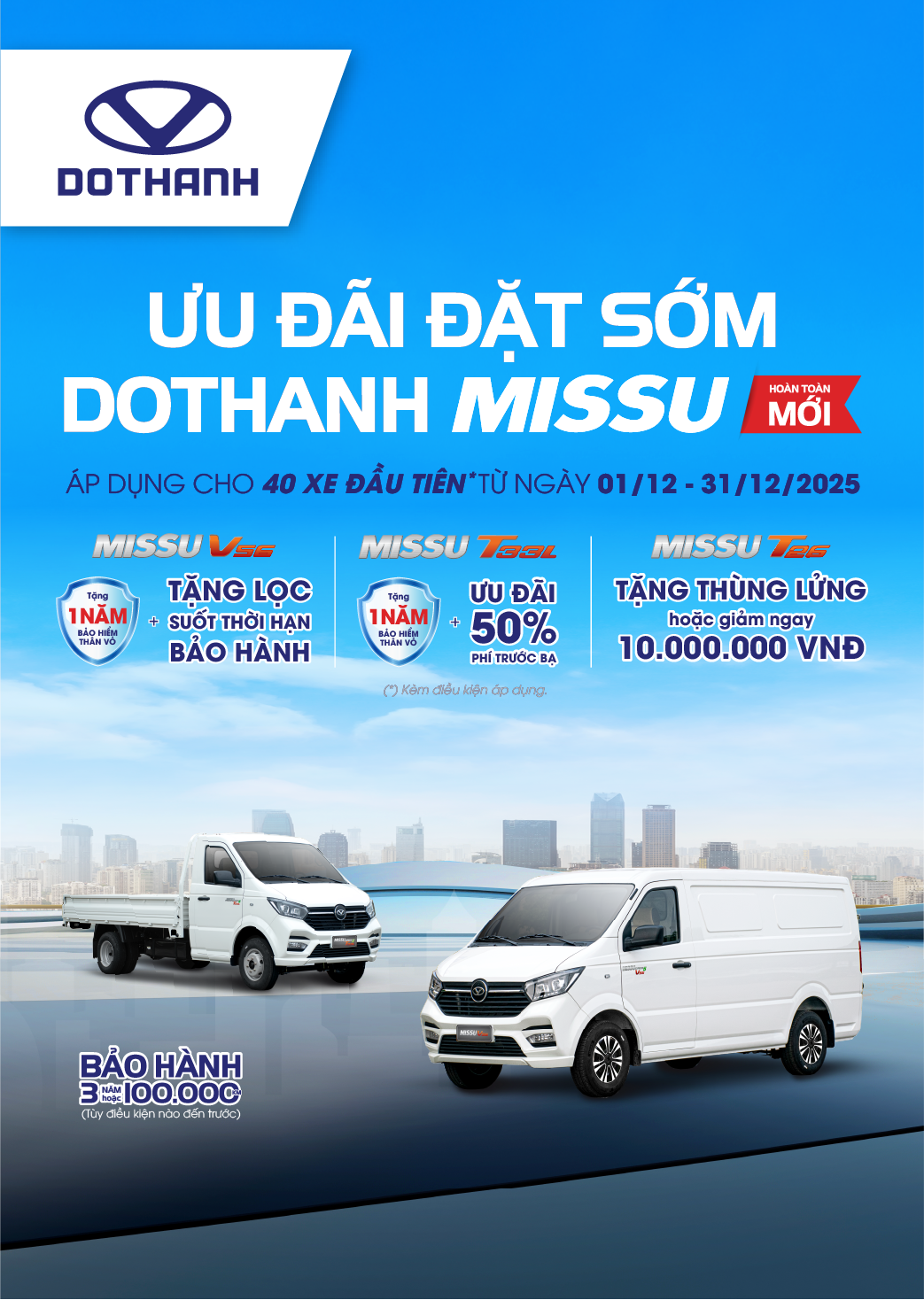 DOTHANH AUTO triển khai chuỗi sự kiện Trưng bày & Trải nghiệm dòng xe tải nhỏ, xe van DOTHANH MISSU trên toàn quốc từ tháng 12/2025, phối hợp cùng Đại lý Đô Thành thực hiện. Xem ngay lịch trình chi tiết!